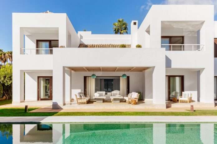 El estudio de interiorismo, Fuertes Santamarta, ha sido el encargado de realizar el proyecto de interiores de una villa ubicada en la exclusiva urbanización Altos Reales, en Sierra Blanca, Marbella. Se trata de una vivienda que cuenta con más de 360 metros cuadrados distribuidos en tres plantas, y que está construida en una parcela de más de 1.000 metros cuadrados, lo que permite disfrutar de un gran espacio de luz natural.