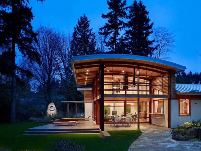 No hay nada mejor que poder disfrutar de una gran casa de campo donde poder escaparse del ajetreado ruido de las ciudades y de las tensiones que vamos acumulando cada día. Casas de campo estamos acostumbrados a ver de muchos estilos diferentes, pero la que hoy os traemos nos ha llamado mucho la atención por la originalidad de su techo, un techo curvo que la diferencia claramente de todas las vistas hasta ahora. Se trata de una casa diseñada por el estudio de arquitectura Balance Associates Architects y que fue levantada a las afueras de Seattle.