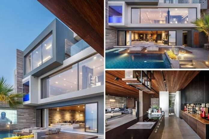 A la hora de diseñar una casa, es muy importante contar con una buena parcela. El problema es que las que se encuentran mejor ubicadas, suelen ser las más caras. Para aquellas personas que tienen dinero por castigo, no suele ser un problema. Un ejemplo lo tenemos en esta casa moderna de la que hoy os queremos hablar. Fue diseñada por el estudio de arquitectura Moriq en la localidad de Amwaj (Bahraim). La parcela que tenía el propietario, estaba frente al mar, por lo que el único requisito que puso a los arquitectos, era que aprovecharan al máximo las vistas al mar.