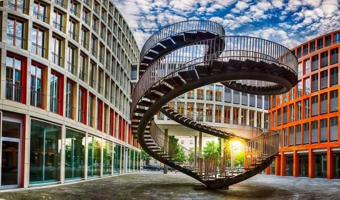También es conocida como la «escalera infinita». Uno puede estar subiendo y bajando sin parar debido a que sus extremos están conectados. Tiene forma de espiral y 9 metros de altura. Se trata de una obra del artista danés Olafur Eliasson. Como podéis pensar, no es nada práctica, pero lo cierto es que da un valor añadido a un edificio bastante convencional, el de las oficinas de KPGM en Múnich.