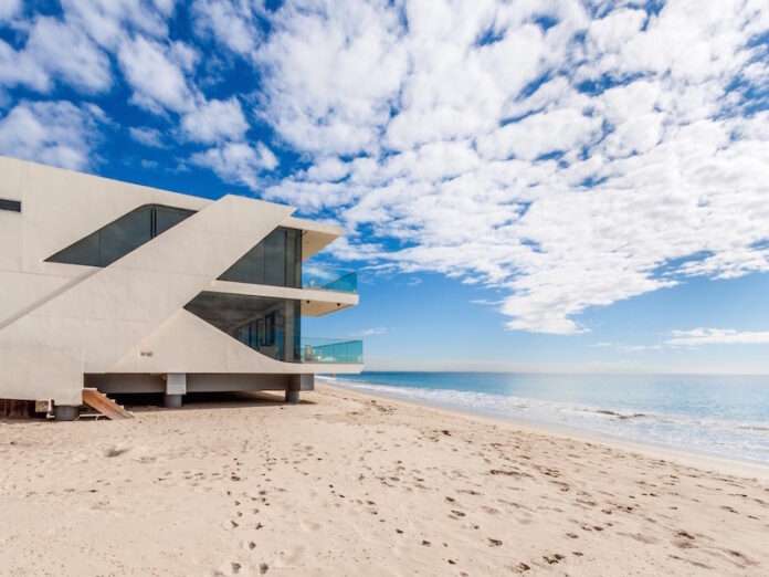 Como si parte del propio océano Pacífico se tratase, esta impresionante residencia se levanta en una de las playas más conocidas de todos los Estados Unidos, nos referimos a la playa de Malibu. Sus limpias líneas la convierten en un elemento más dentro del paisaje, una residencia que se caracteriza por ofrecer unas vistas de 270 grados sobre el océano. Para lograr esto hace uso de un gran número de cristales y terrazas que dejan entrar la luz del sol prácticamente a todas las habitaciones.