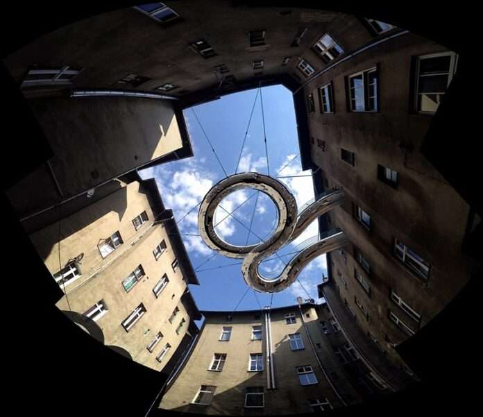 El actual ritmo de vida que llevamos hace que en muchas ocasiones sea prácticamente imposible sacar tiempo para el relax. Pasamos mucho tiempo en la oficina y cuando salimos de ella no nos queda ganas de salir a pasear por las calles de nuestra ciudad para liberar nuestra mente. Es por esto que en Polonia, el estudio de arquitectura Zalewski, ha diseñado una pasarela flotante en espiral entre edificios, cubierta de hierba donde poder despejarse en esos momentos de máximo estrés.La pasarela ha añadido un toque natural de vegetación a un antiguo patio gris, un tono colorido que busca poder ayudar a los empleados cuando su ánimo está por el suelo.